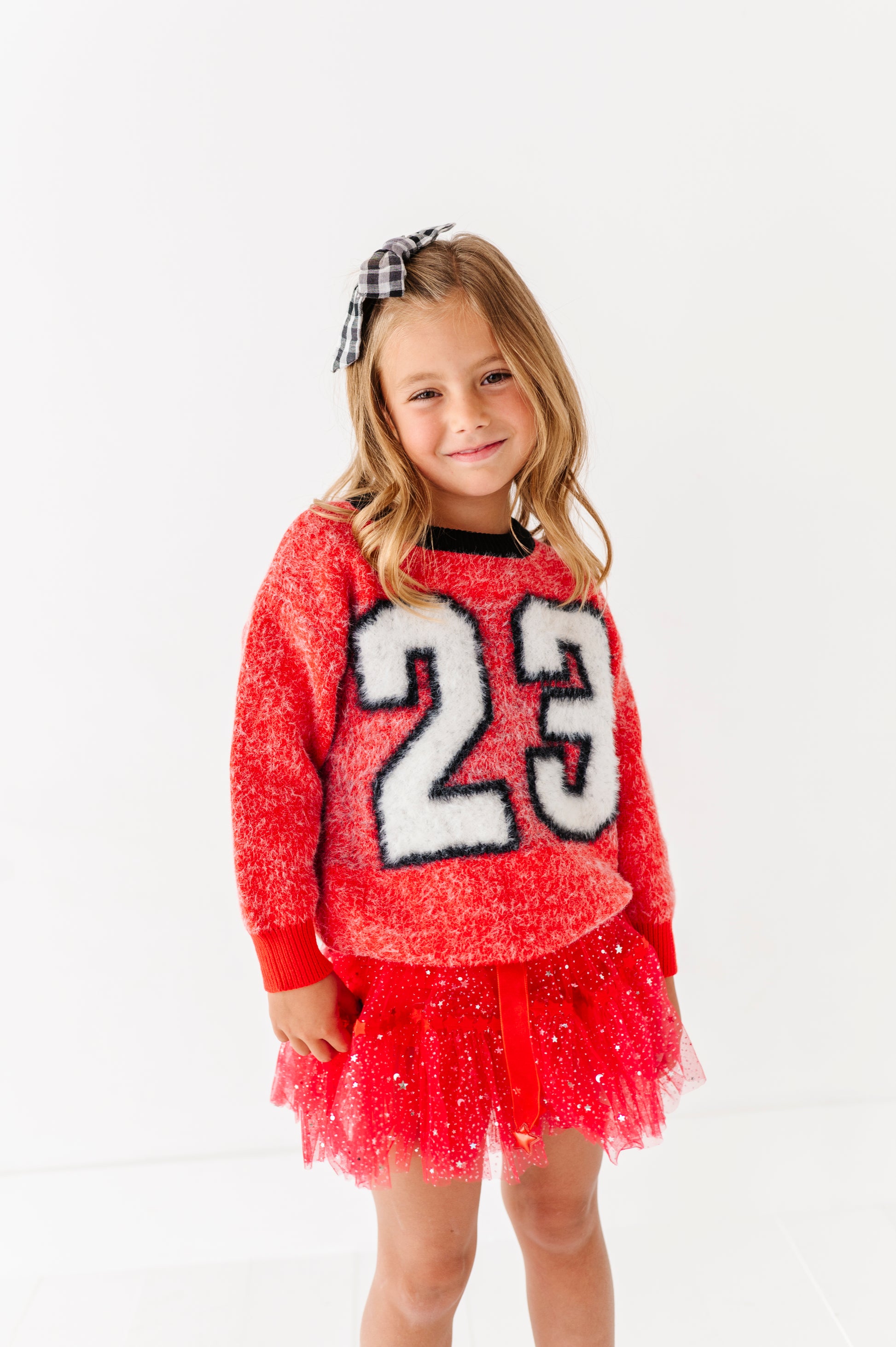 Warm, soft & fuzzy, cloud sweater to replicate a jersey.