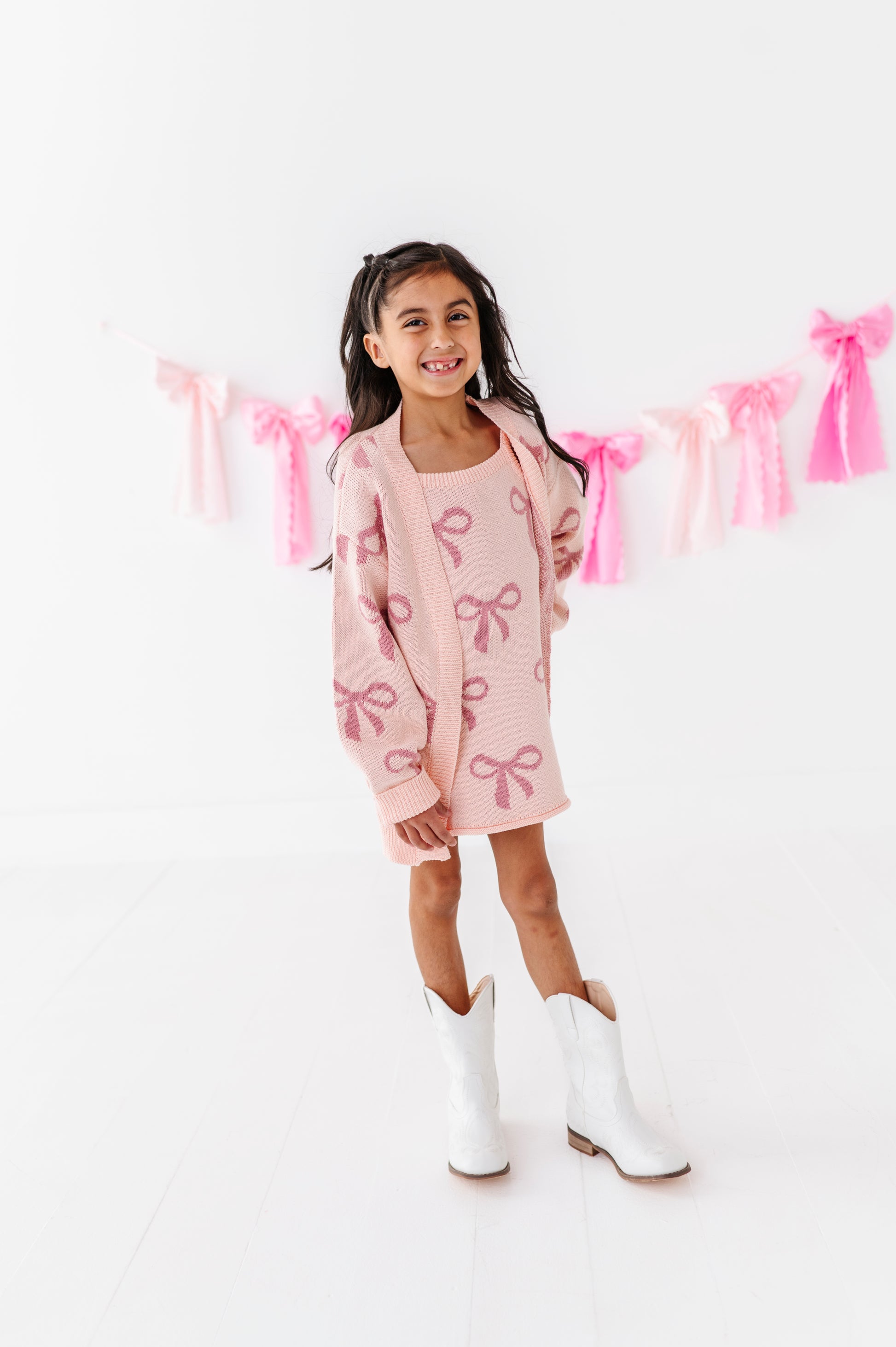 Listing is for the knit pink cardigan with bow print.