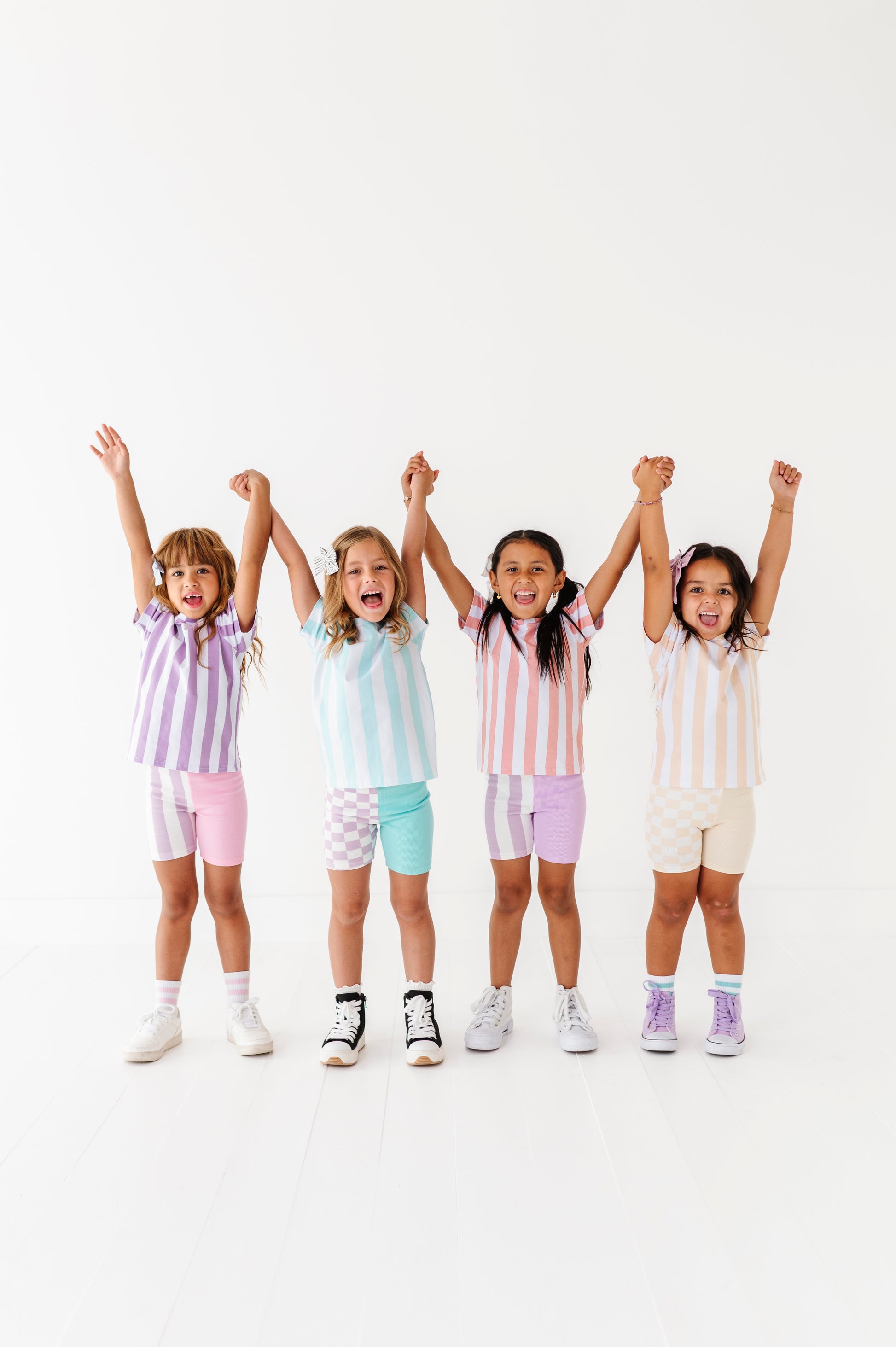 Striped tee shirt in a medium weight spandex/cotton blend.