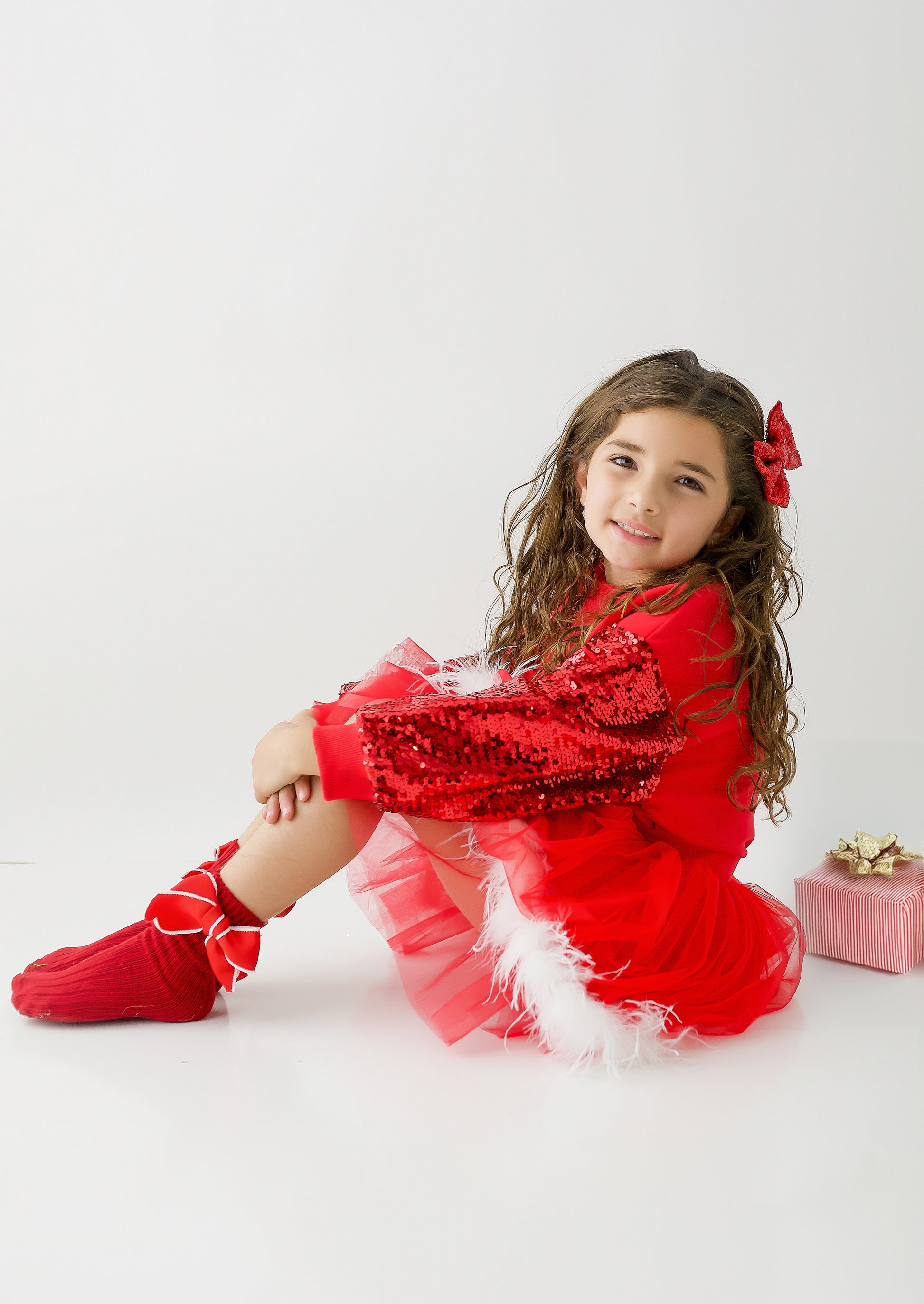 Listing is for the red mesh skirt with skorts attached underneath. The shorts underneath are a red spandex to match the mesh skirt. The faux fur detail trim adds to the holiday spirit & looks so cute with a number of items in our shop!